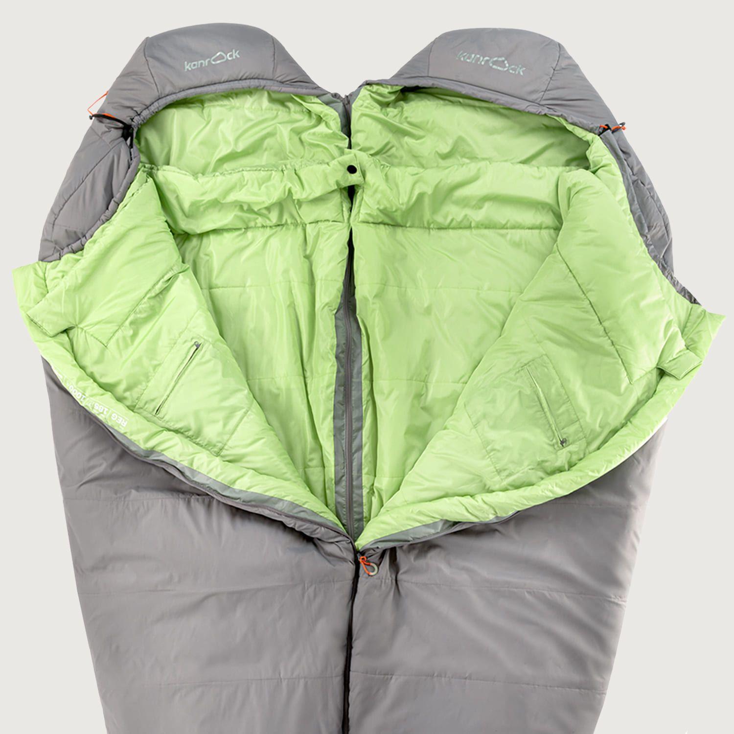 The Kanrock Aurora +5 trekking sleeping bag is available with zippers for both left and right-handed users. Additionally, two sleeping bags with different zippers can easily be paired together, even if they come from different models in the range and have different sizes